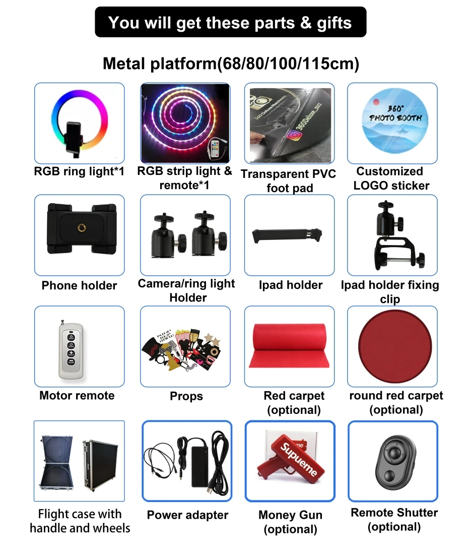 1. Safe slow start to high-speed smooth spin 2. Easy setup & transport, any van can load it 3. Latest upgrade packaging, most secure transport 4. Extremely stable & safe, Anti-slip & shaking, 0 noise 5. Ultra lightweight, in & out at an event within minutes6. Pre-installed light strip & stable pads, extra convenience |